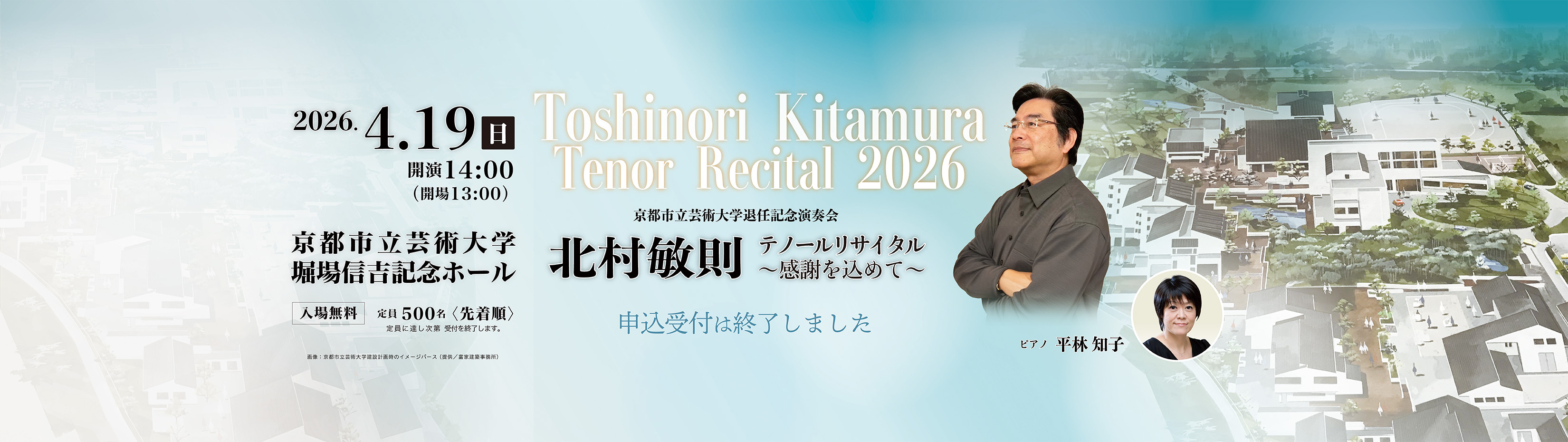 京都市立芸術大学退任記念演奏会 北村敏則テノールリサイタル ~感謝を込めて~【申込受付は終了しました】