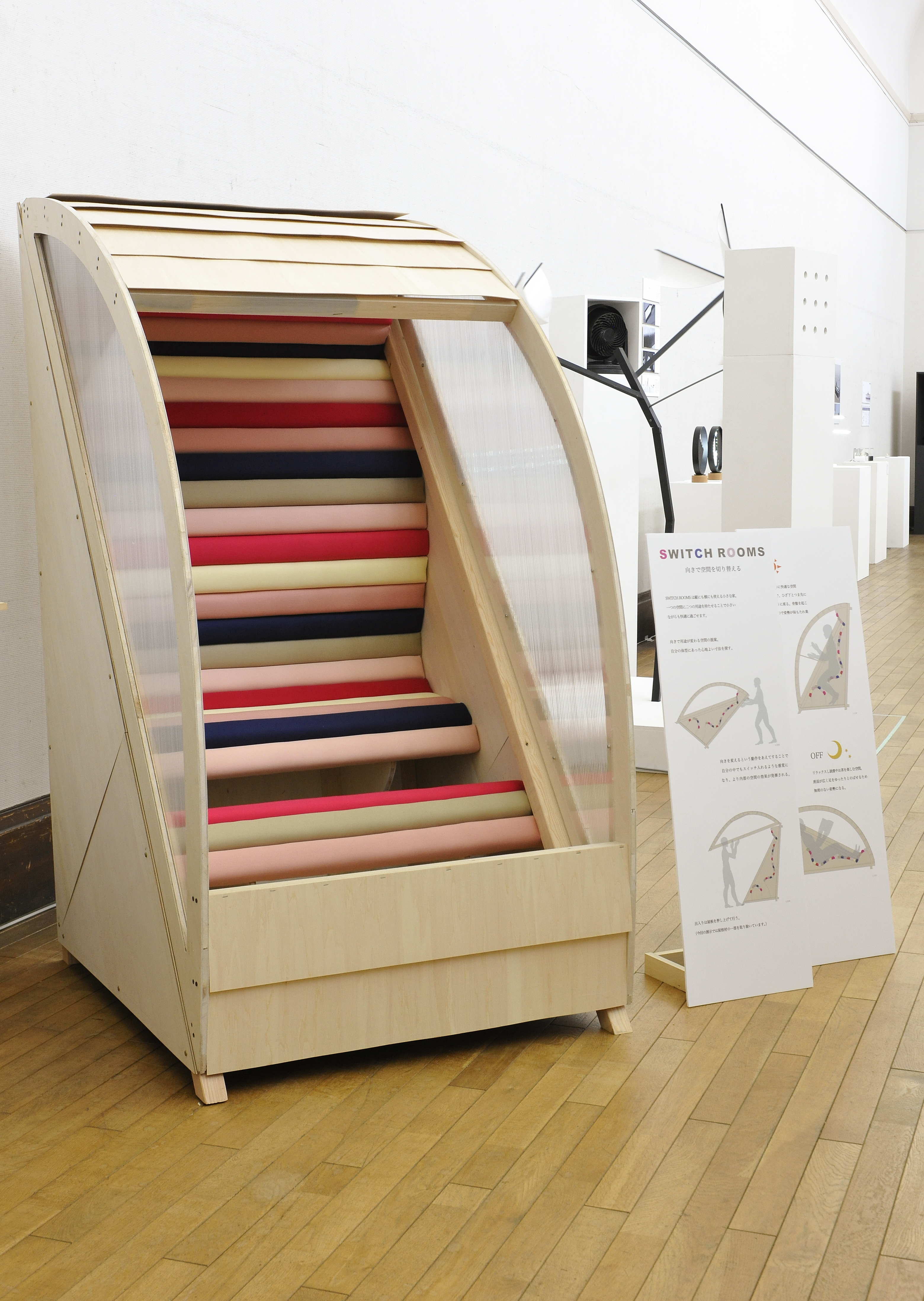 2014年度 奨励賞 デザイン科 環境デザイン専攻 3回生 平野 佑季 HIRANO Yukiサイズ:165.0×91.0×94.0素材・技法:木材・ウレタン・布・中空ポリカ