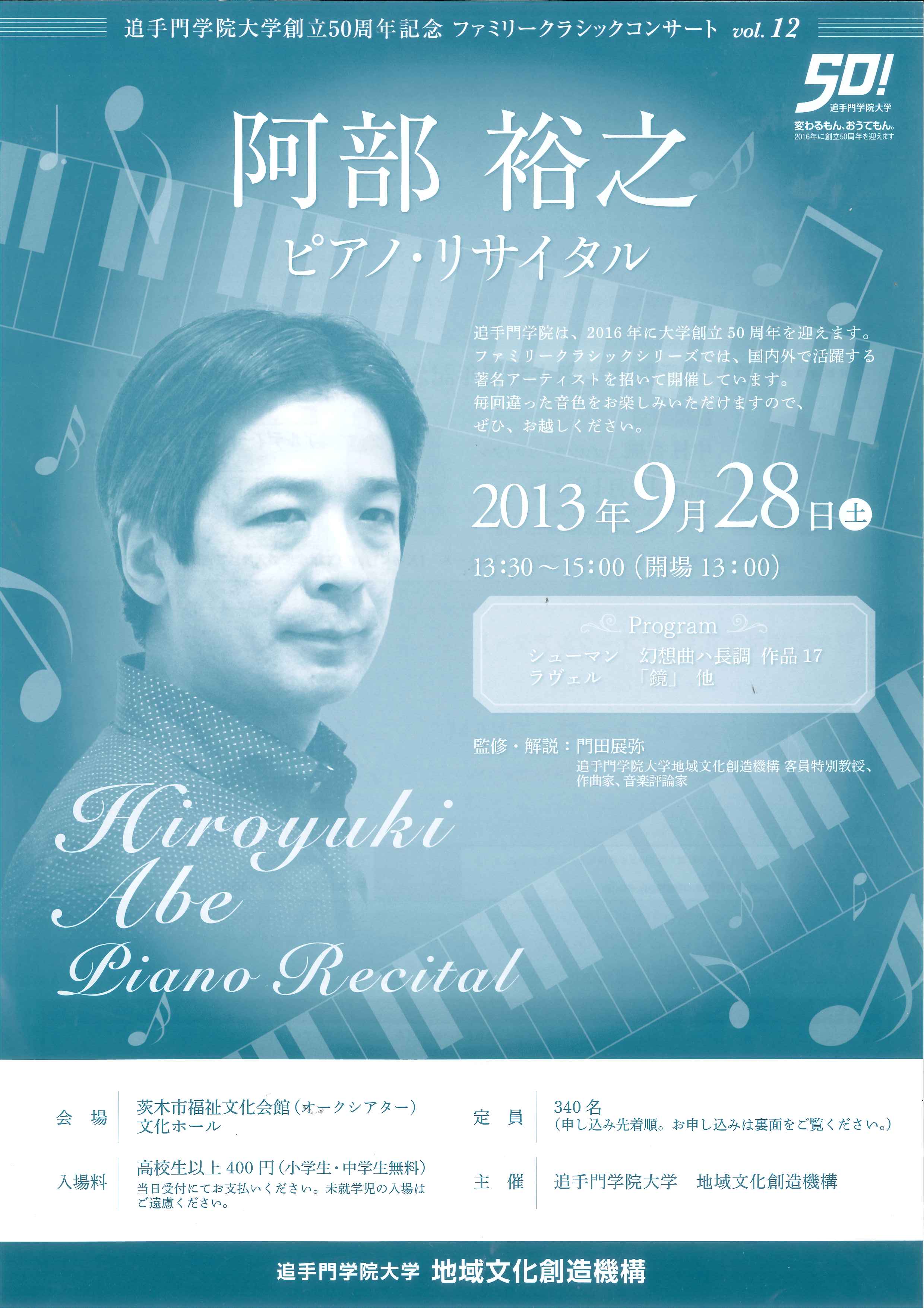 京都市立芸術大学音楽学部阿部裕之教授によるピアノ・リサイタルが,茨木市福祉文化会館(オークシアター)文化ホールにて開催されます。