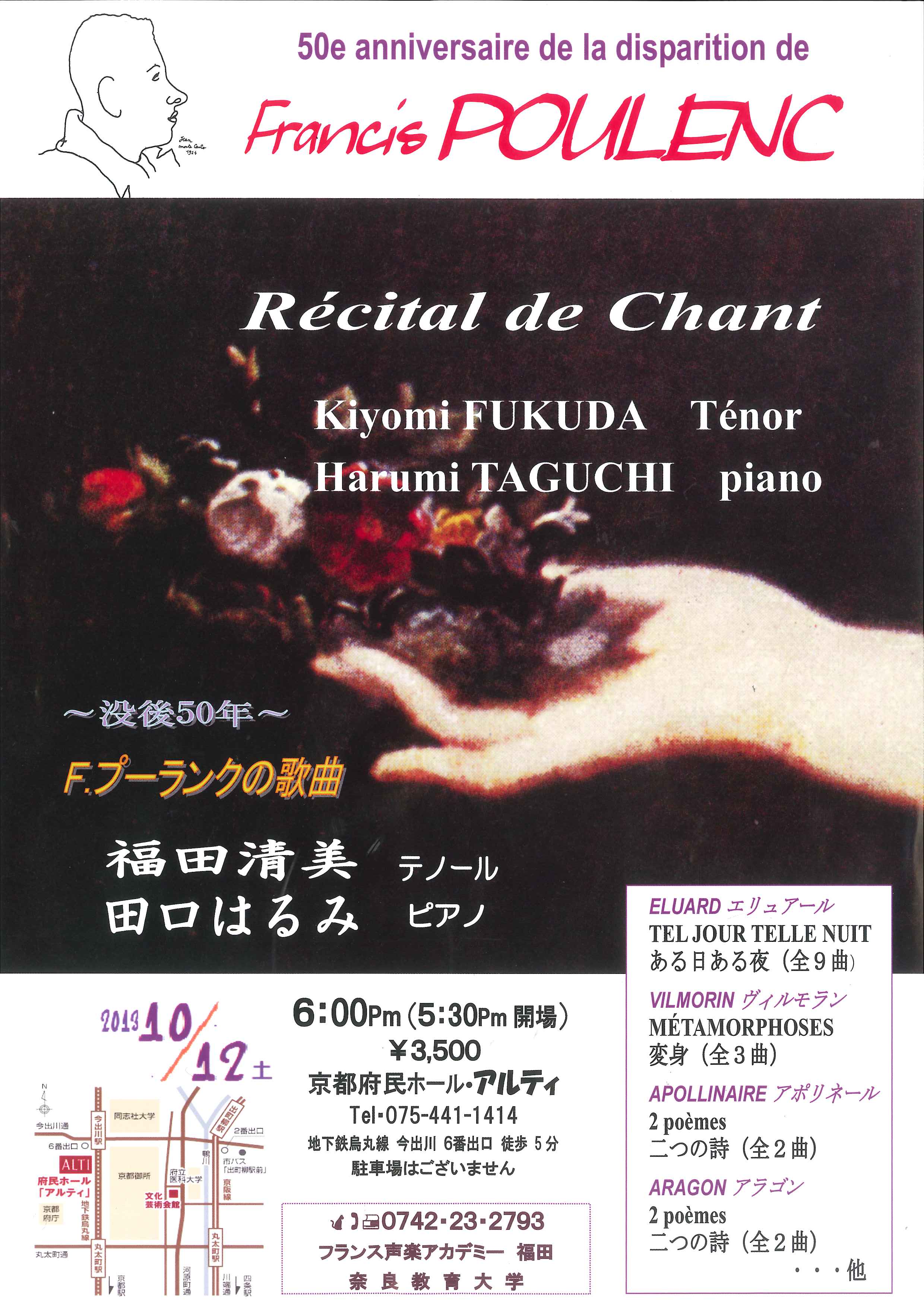 京都市立芸術大学音楽学部の福田清美非常勤講師が,京都府民ホール・アルティにて行われる「~没後50年~ F.プーランクの歌曲」に出演しますので,是非ご来場ください。