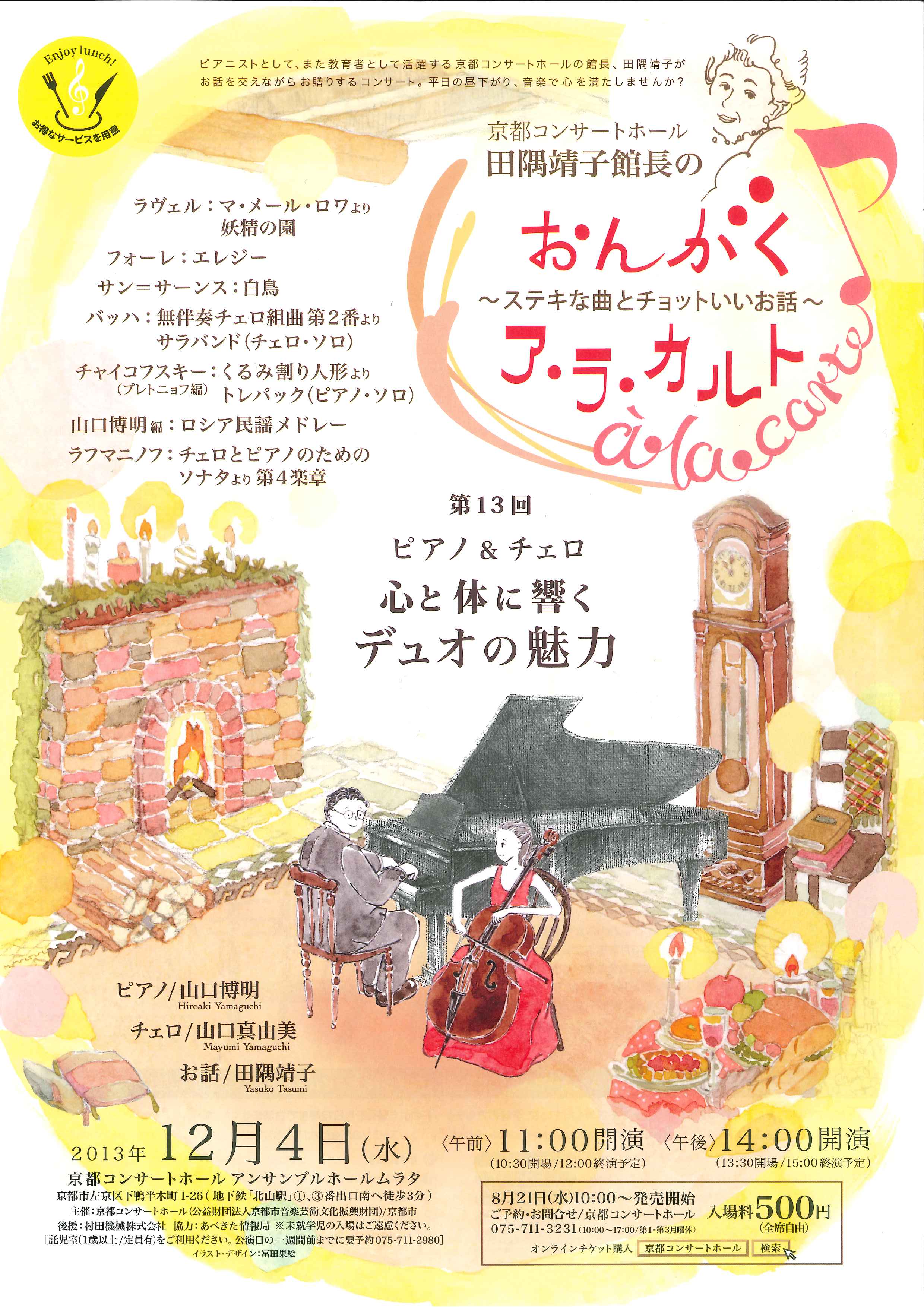 13回目の今回のテーマは,「ピアノ&チェロ 心と体に響くデュオの魅力」です。