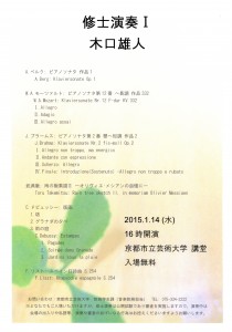 京都市立芸術大学では,2014年度大学院音楽研究科の学生による修士演奏を行います。