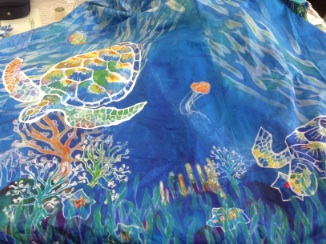 オオさん・ショウさんの浴衣の図柄は,京都水族館スタッフである京都芸大卒業生がデザインし,京都芸大の滝口洋子教授(ファッションデザイン)がフォルムのデザインと縫製を担当しています。