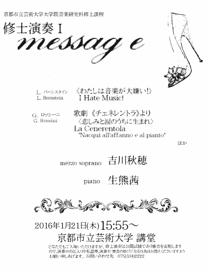 京都市立芸術大学では,2015年度大学院音楽研究科の学生による修士演奏を行います。