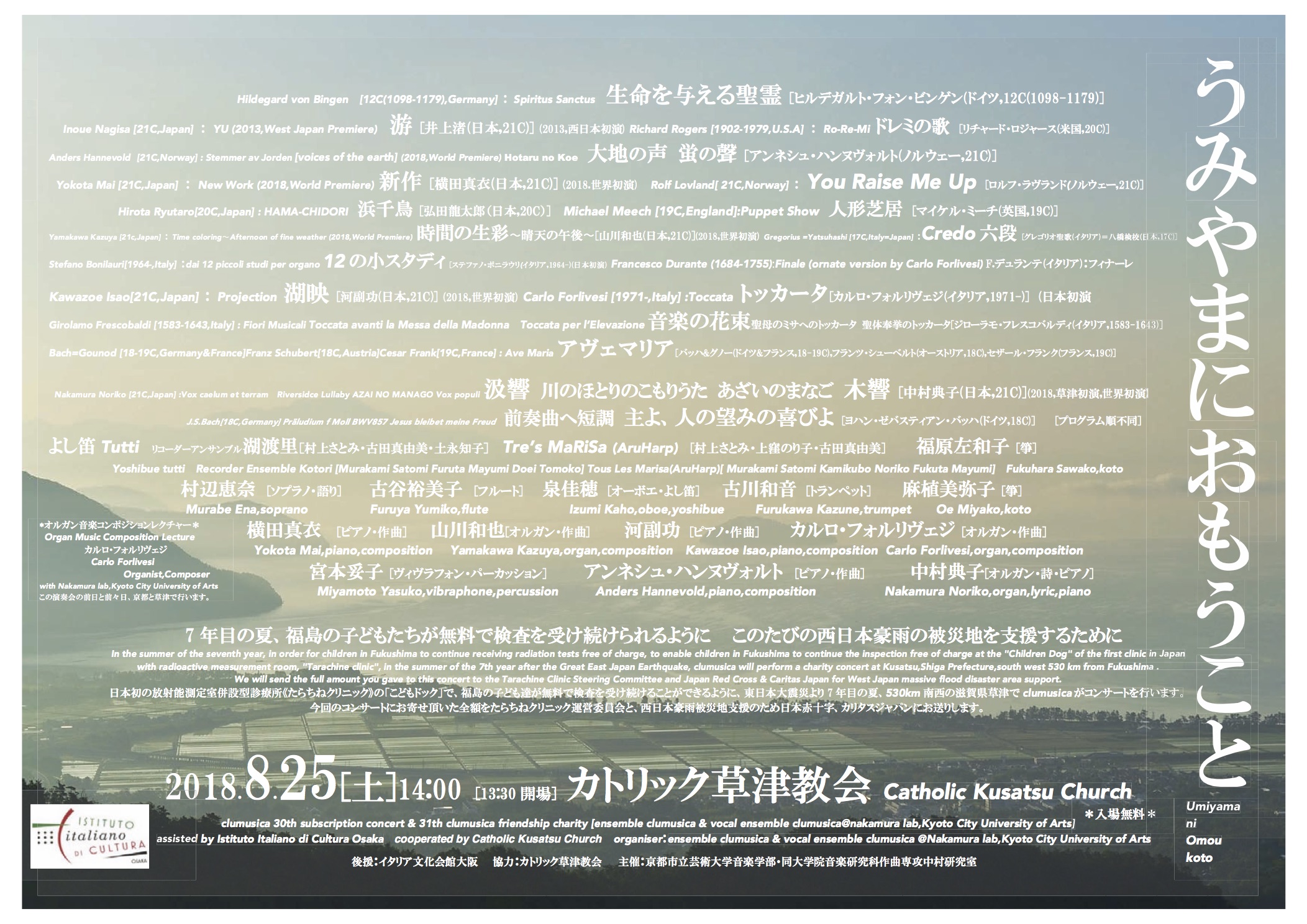 日本初の放射能測定室併設型診療所《たらちねクリニック》の「こどもドック」で,福島の子ども達が無料で検査を受け続けることができるように,東日本大震災より7年目の夏,530km南西の滋賀県草津でコンサートを行います。