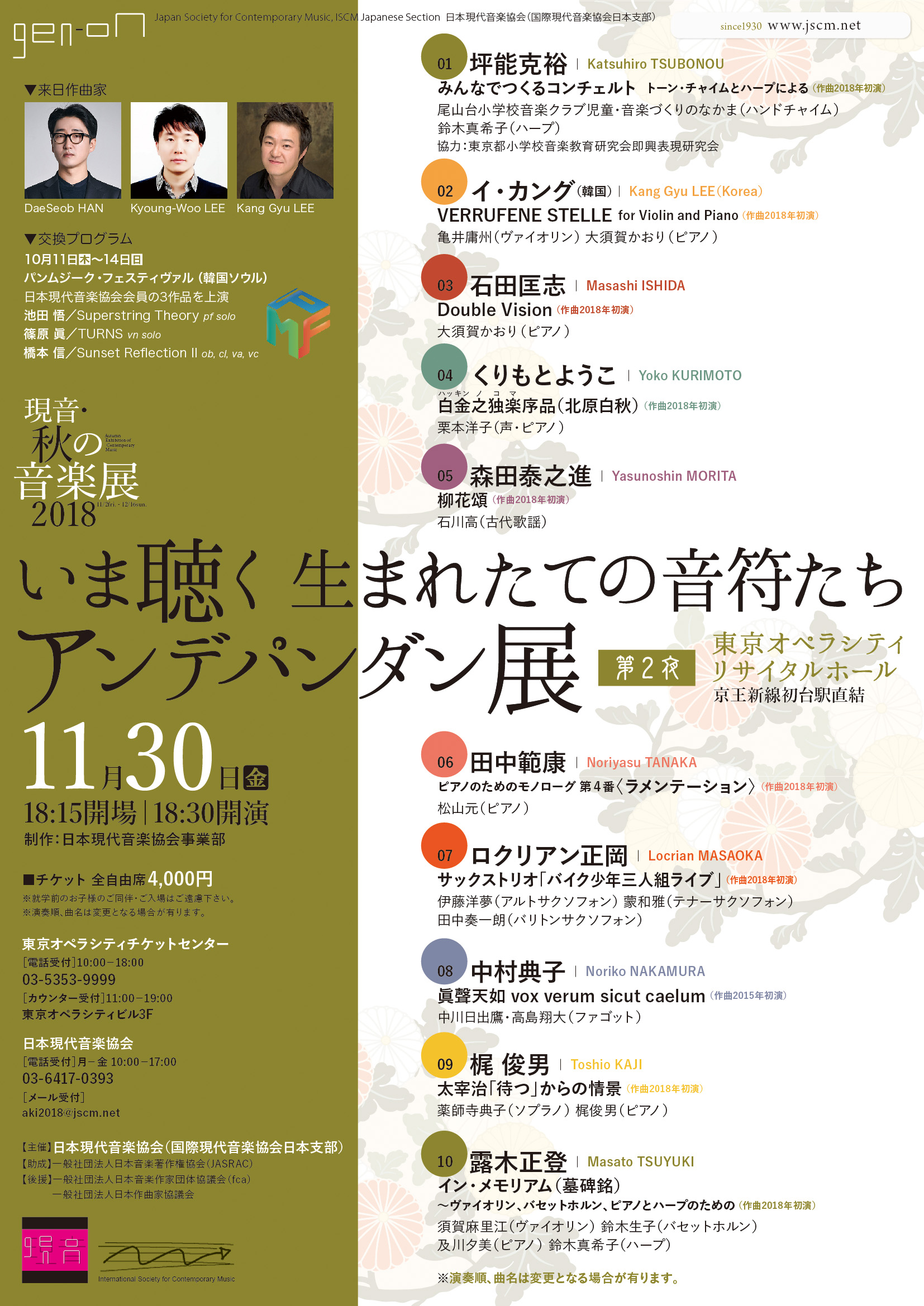 - 〈現音・秋の音楽展2018〉いま聴く 生まれたての音符たち アンデパンダン展 Japan Society for Comtenporary Music Autumn Exhibition 2018 Indépendants