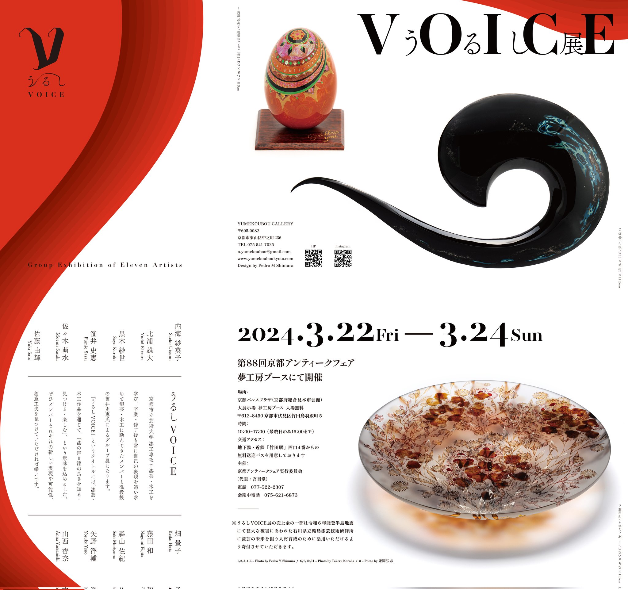 2024年3月22日(金曜日)から24日(日曜日)までの3日間、京都市伏見区の京都パルスプラザ 大展示場で開催される「第88回 京都アンティークフェア」の夢工房ブースにて、本学漆工専攻の笹井史恵准教授をはじめとした漆工専攻の教員や卒業生が出展します。
