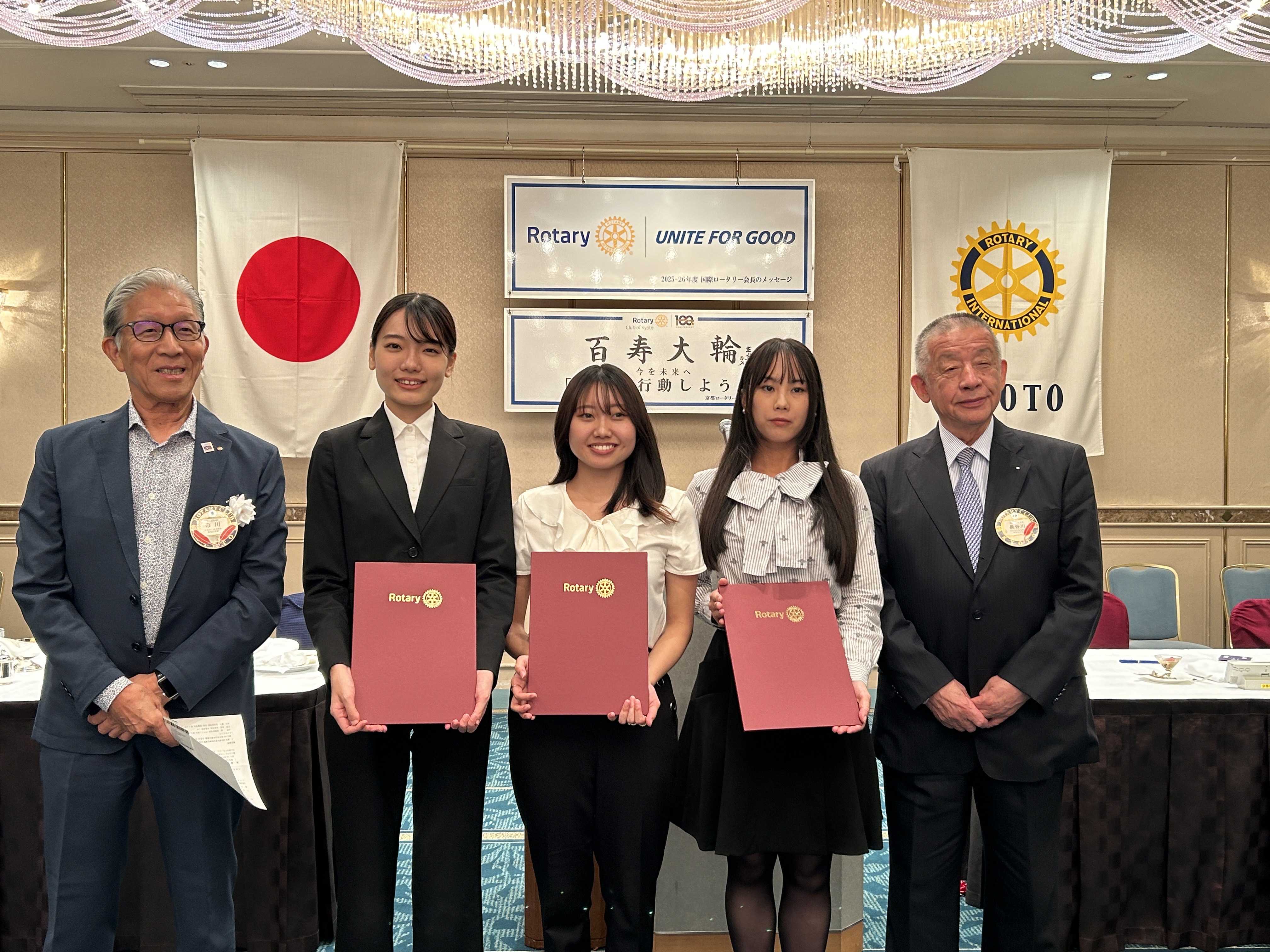京都ロータリークラブ奨学金授与式に派遣交換留学生3名が参加