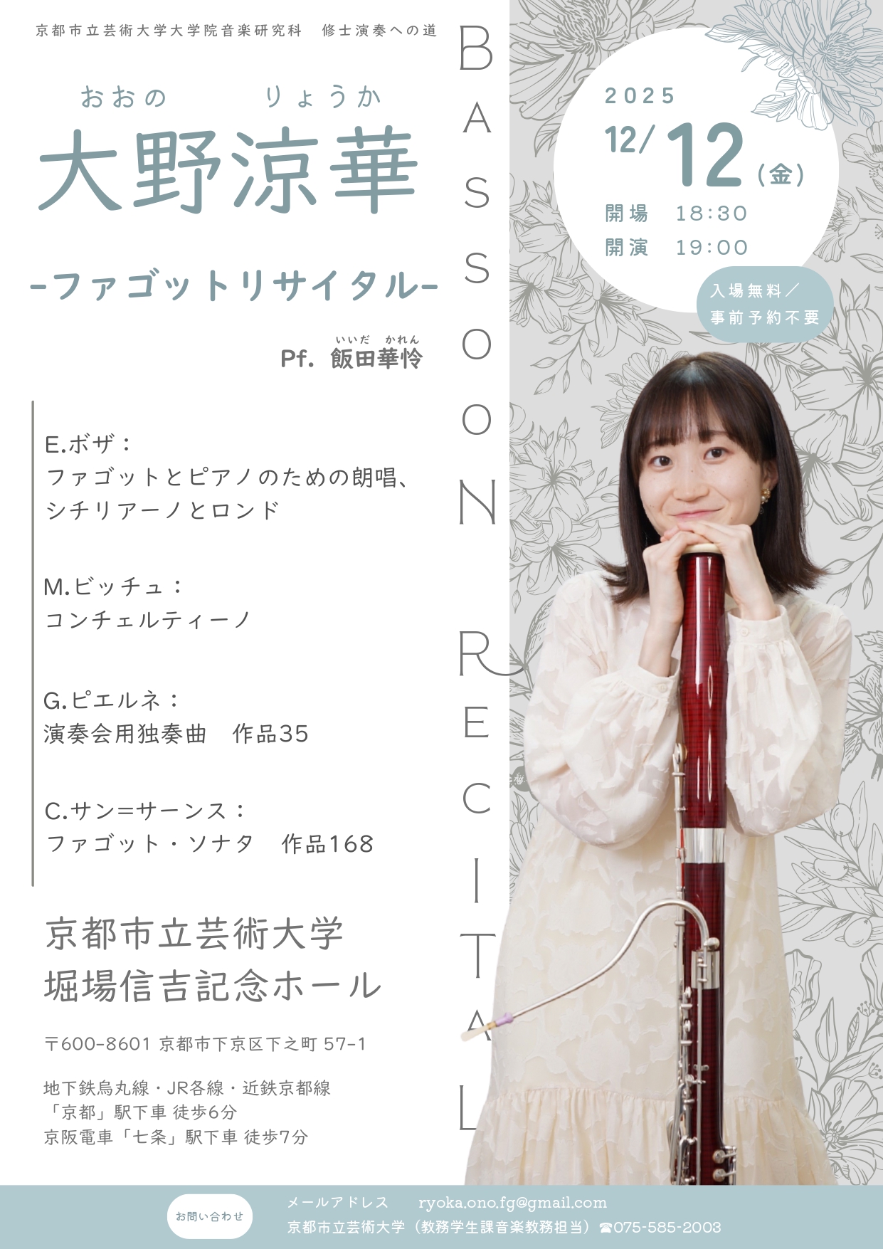 | 出演者 | 大野 涼華(ファゴット) 飯田 華怜(ピアノ) |