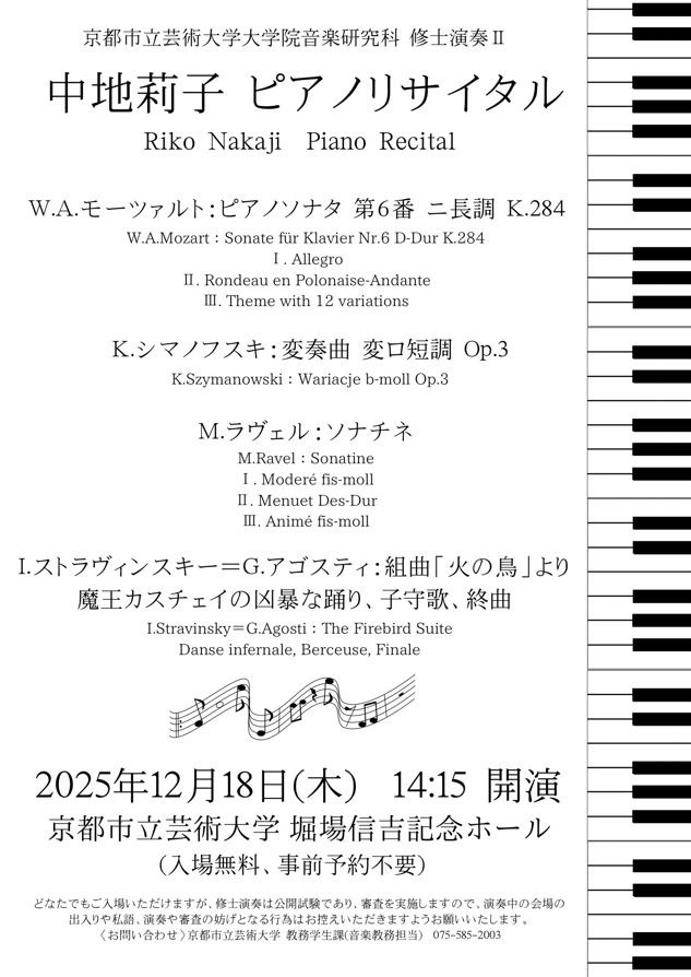 | 会場 | 京都市立芸術大学 堀場信吉記念ホール |