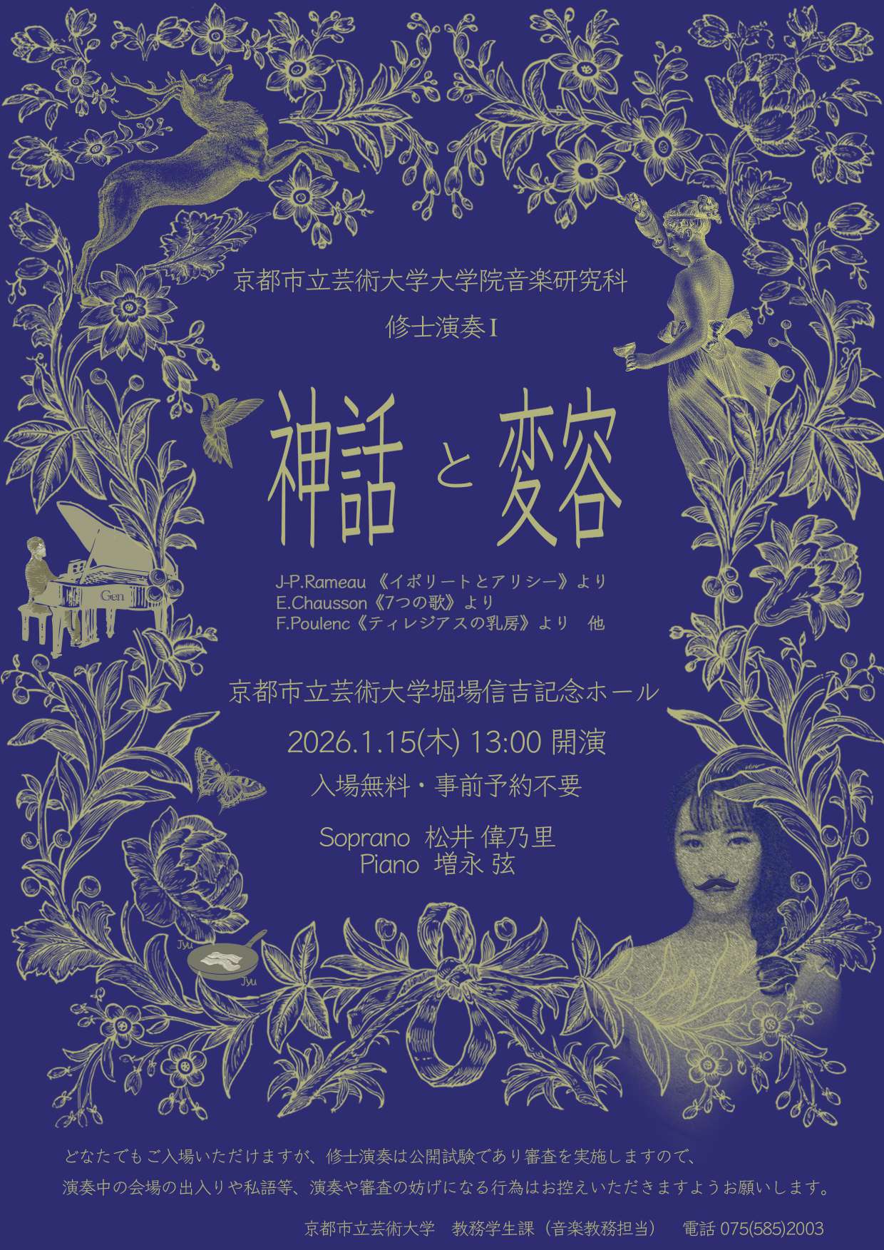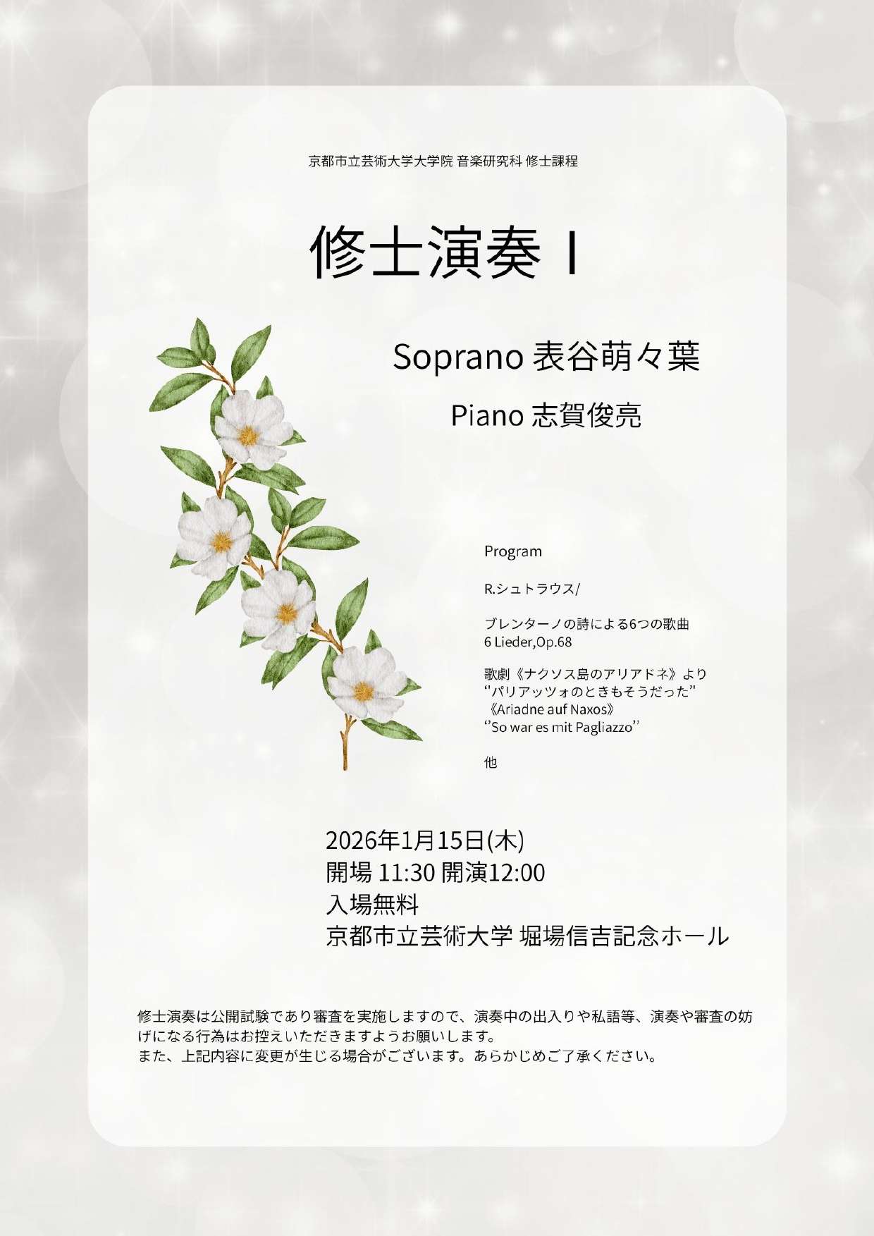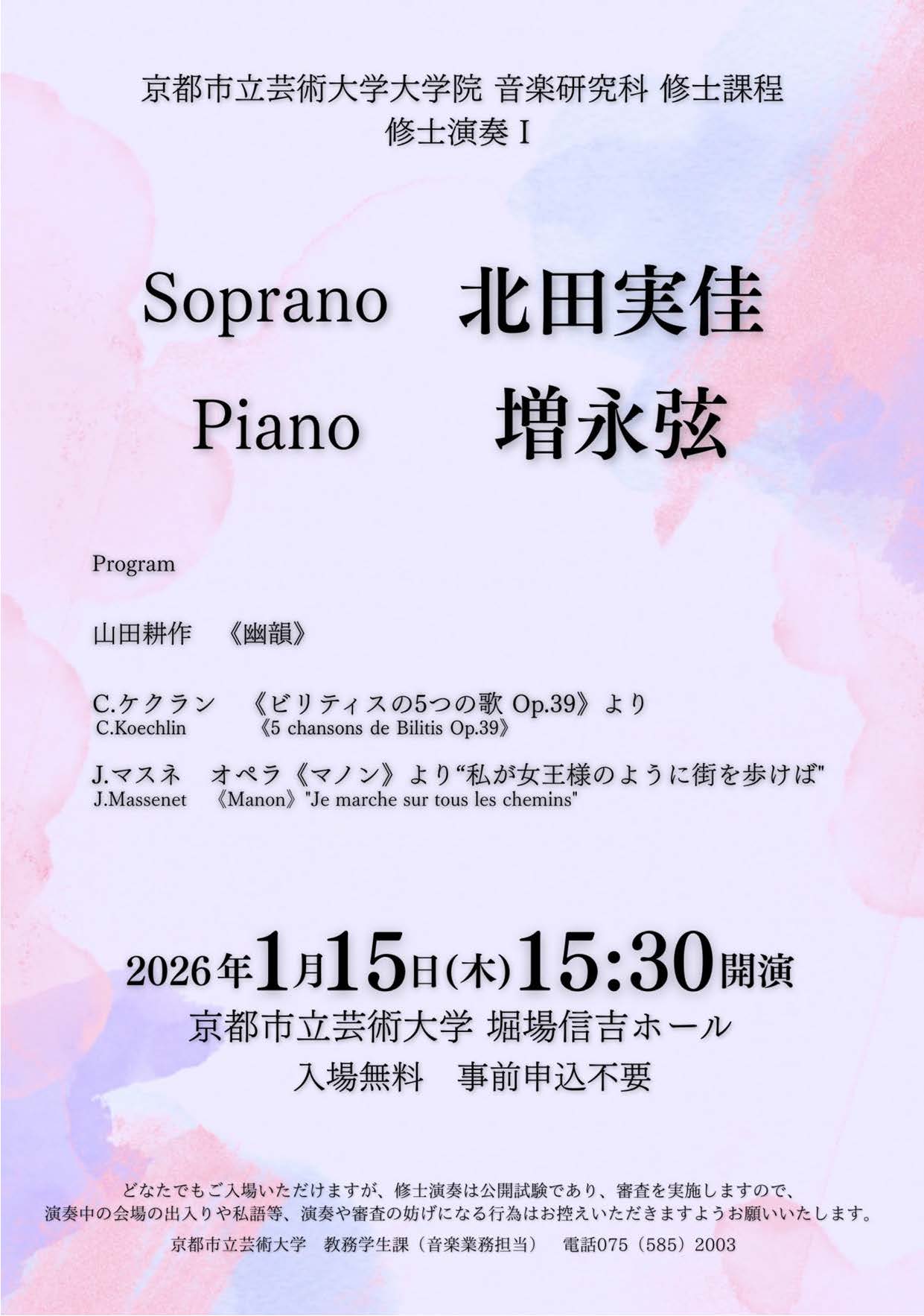 京都市立芸術大学では、2025年度大学院音楽研究科の学生による修士演奏を行います。