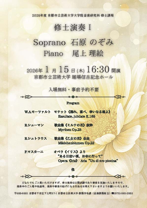 | 会場 | 京都市立芸術大学 堀場信吉記念ホール |