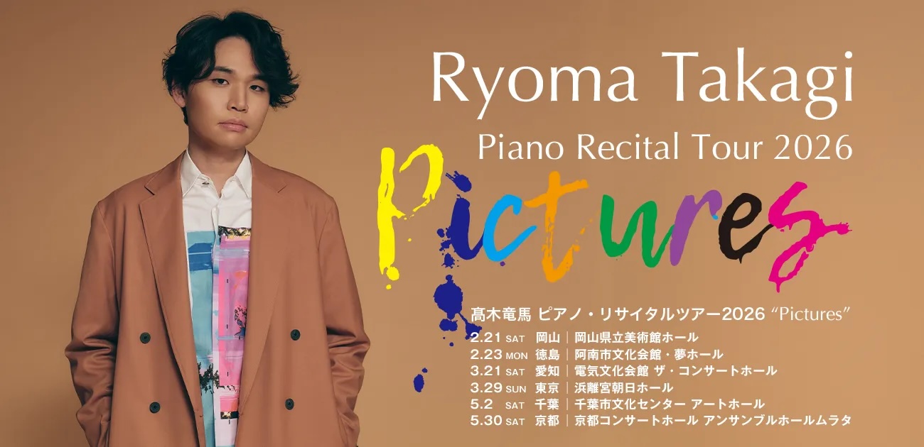 本学音楽学部ピアノ専攻の髙木竜馬講師が出演するピアノ・リサイタルツアー “Pictures” が、2026年2月21日(土曜日)の岡山公演を皮切りに、京都を含む全国6都市で開催されます。