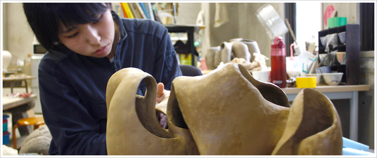 “創造”と“表現”への展開の期間です。これまで修得してきた“素材”と“技術”を生かし、自主テーマによる制作を通して、新しい「やきもの」の世界を開拓し、各自の陶磁表現を目指します。後期は各自の制作を深め、卒業制作に取り組みます。