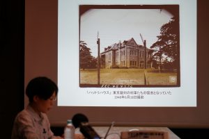 高嶋氏はまず,大坪氏におけるフィクショナルに追加された曖昧な影に注目する。これは誰のシルエットなのか? 接収前に住んでいた住人? 一時期そこに住んだGHQの将校やその家族? 返還後の住人? 複数の解釈が可能だが高嶋氏はそこに「複数の記憶が多重露光的に重なり合い,判別不可能になったもの」「もはや明確な像を結ぶことのできない記憶」を見ることができると指摘する。