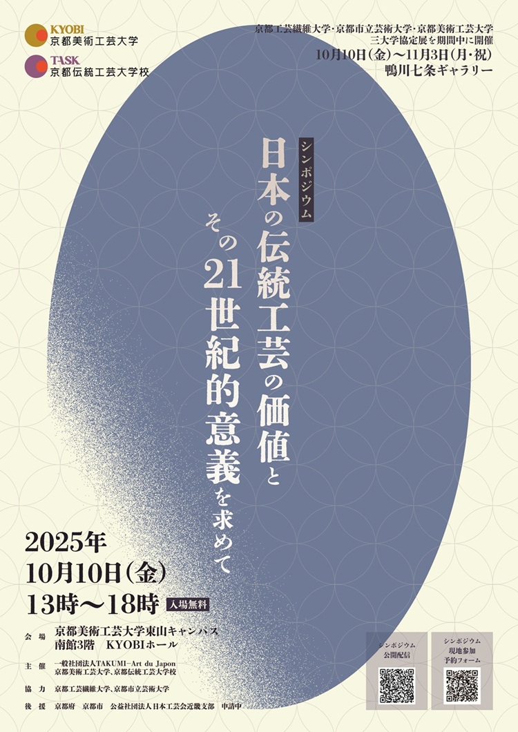 シンポジウム「日本の伝統工芸の価値とその21世紀的意義を求めて」2025/10/10京都美術工芸大学 東山キャンパス南館3階 KYOBIホール開催予定大学関連展覧会