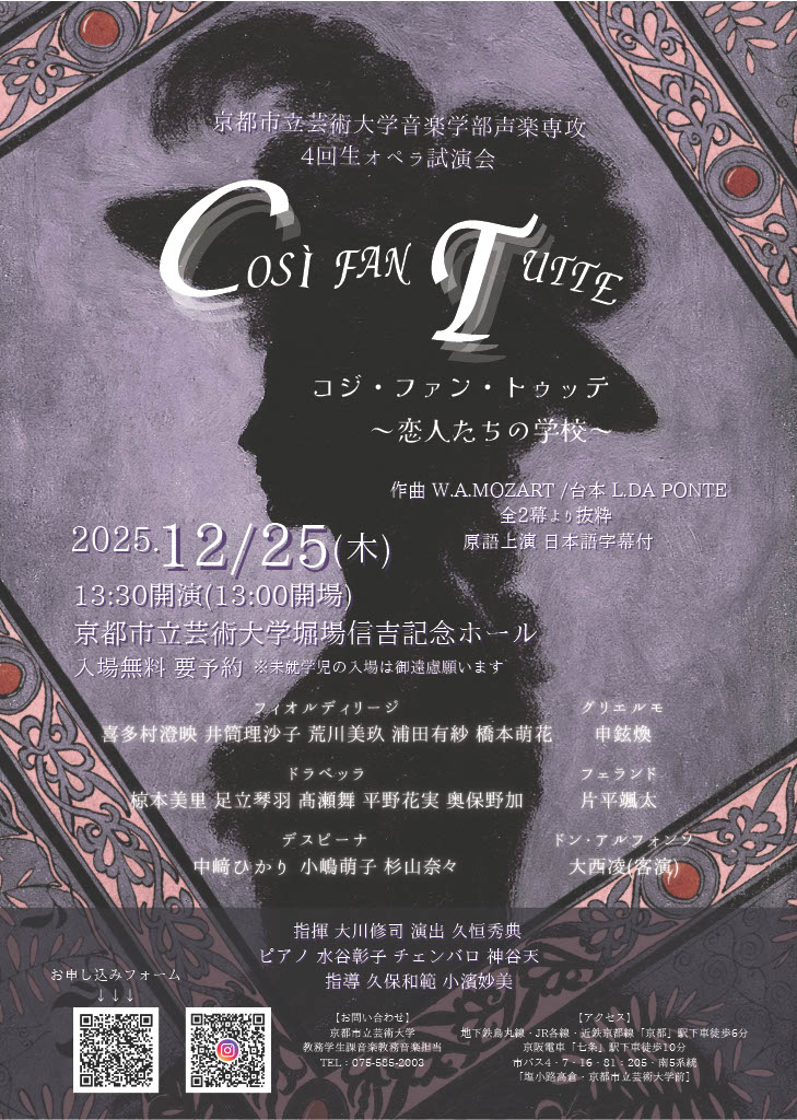 4回生オペラ試演会2025/12/25京都市立芸術大学 堀場信吉記念ホール開催予定大学関連演奏会