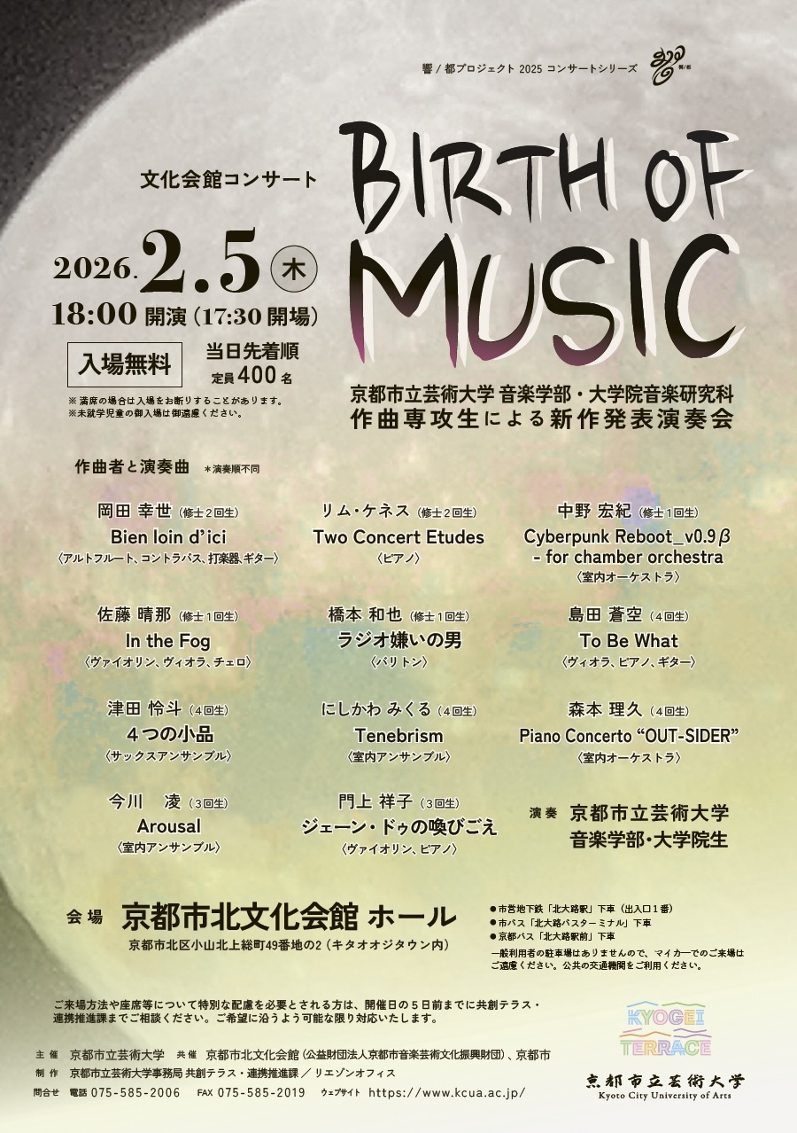 文化会館コンサート「Birth of Music」2026/02/05京都市北文化会館開催予定大学関連演奏会