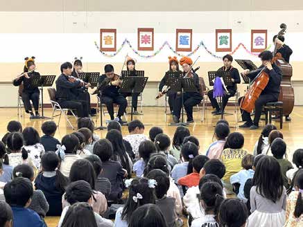 弦楽器と管楽器のアンサンブルで、ビゼーの歌劇「カルメン」などのクラシックの名曲から親しみやすいアニメソングまで、幅広いプログラムを約400名の児童たちに披露しました。また演奏後には質問タイムも設けられるなど、音楽を通して交流が生まれ、学びと感動が詰まった時間となりました。