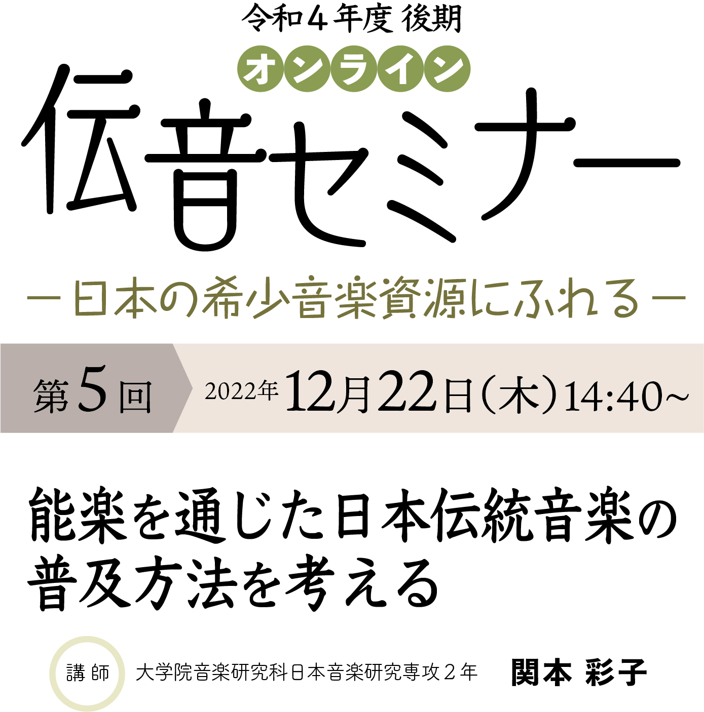オンライン伝音セミナー 第5回 能楽を通じた日本伝統音楽の普及方法を考える |