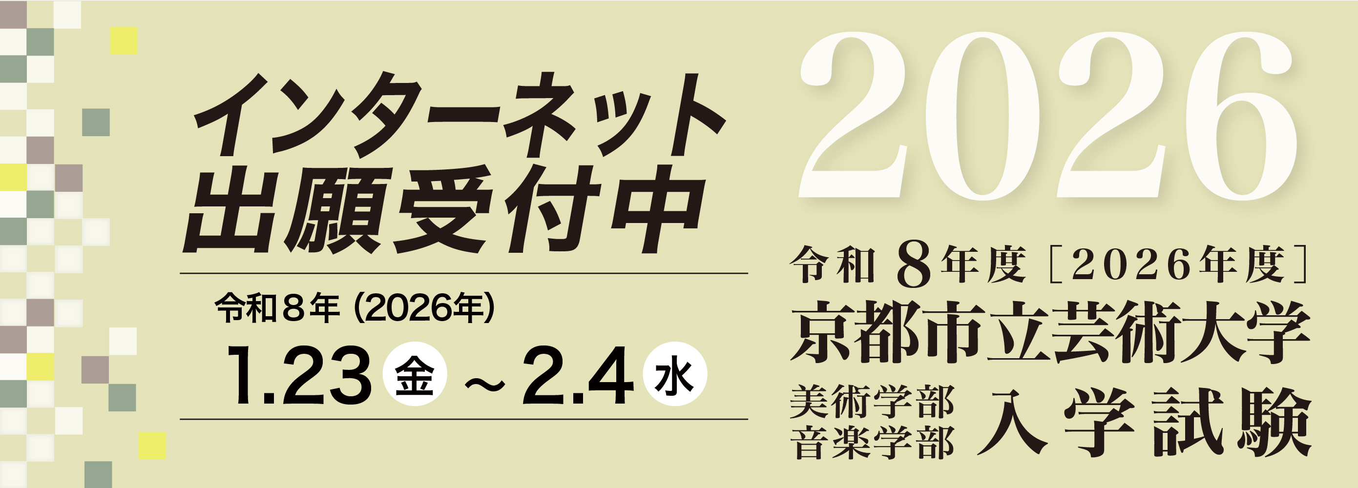 令和8年度美術学部・音楽学部入学者選抜のインターネット出願登録の受付を開始します。出願期間等については以下のとおりです。