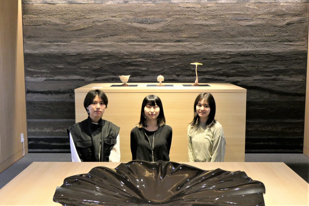 宇都宮 三帆 [大学院美術研究科修士課程美術専攻(版画)1年生] 川原 萌 [大学院美術研究科修士課程美術専攻(日本画)2年生] 矢作 玲乃亜 [大学院美術研究科修士課程工芸専攻(漆工)1年生] |